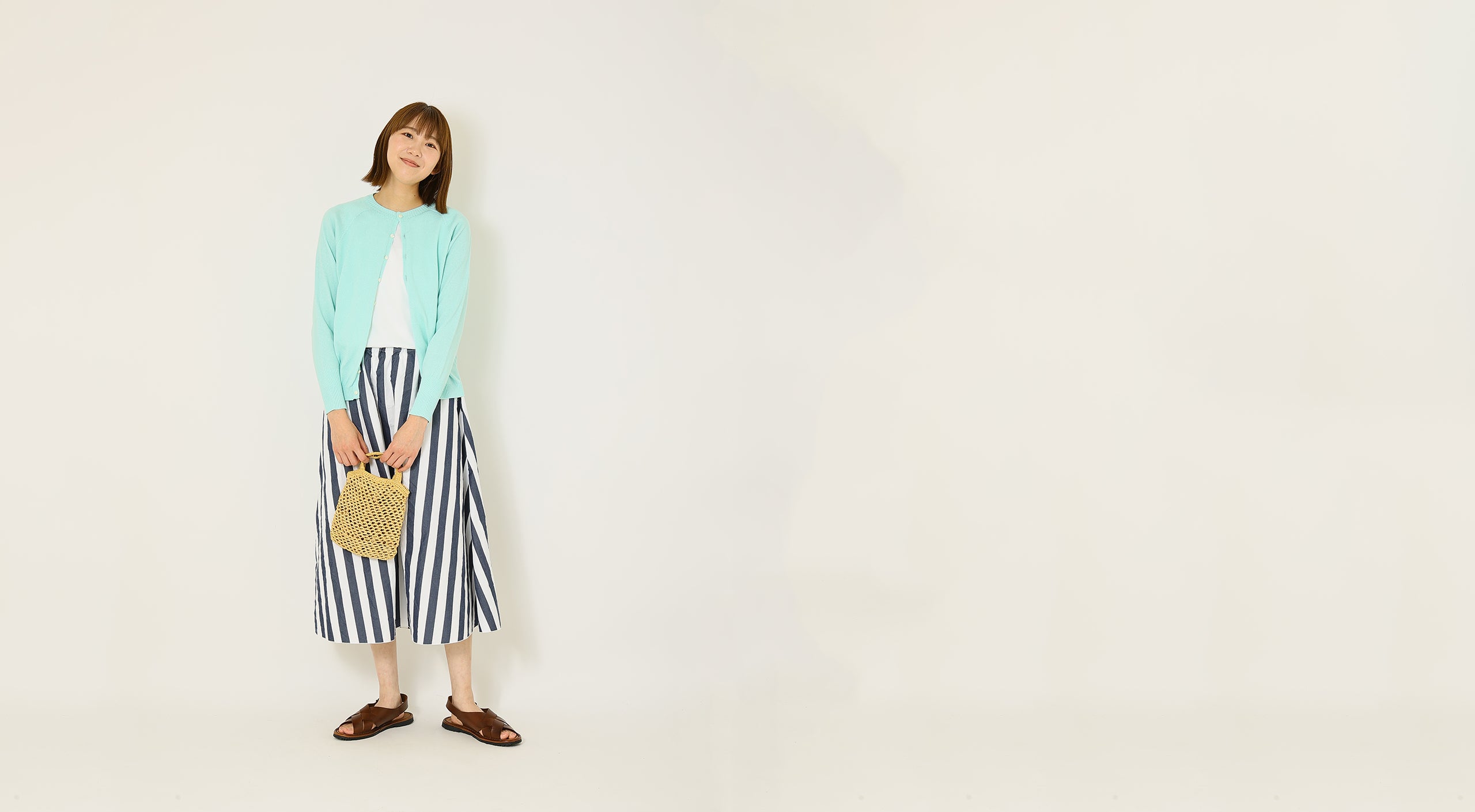 100/2コットン フレアープルオーバー | ネイビーストライプ
