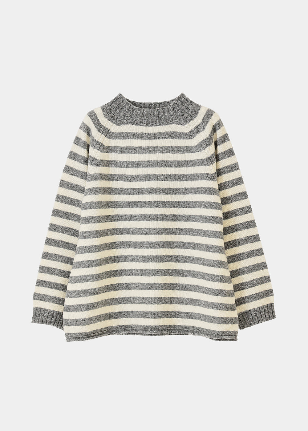 ニットの産地、群馬県太田市がより良いものづくりを掲げて生産するOTA KNIT(おおたニット)。ふんわりと柔らかく、チクチク感のない心地よい肌触りで心まで温めてくれるような、優しい着用感。しっかりとした編地は長年培われた技術だからこそ、安心してご使用頂けます。自然に立ち上がるハイネックとラグランスリーブ、ゆったりとしたシルエットは、着心地抜群。くるりと小さく巻き上がった裾がポイントです。ボーダー柄なので一枚でコーディネートの主役となるニットです。今年は何色にしましょうか?