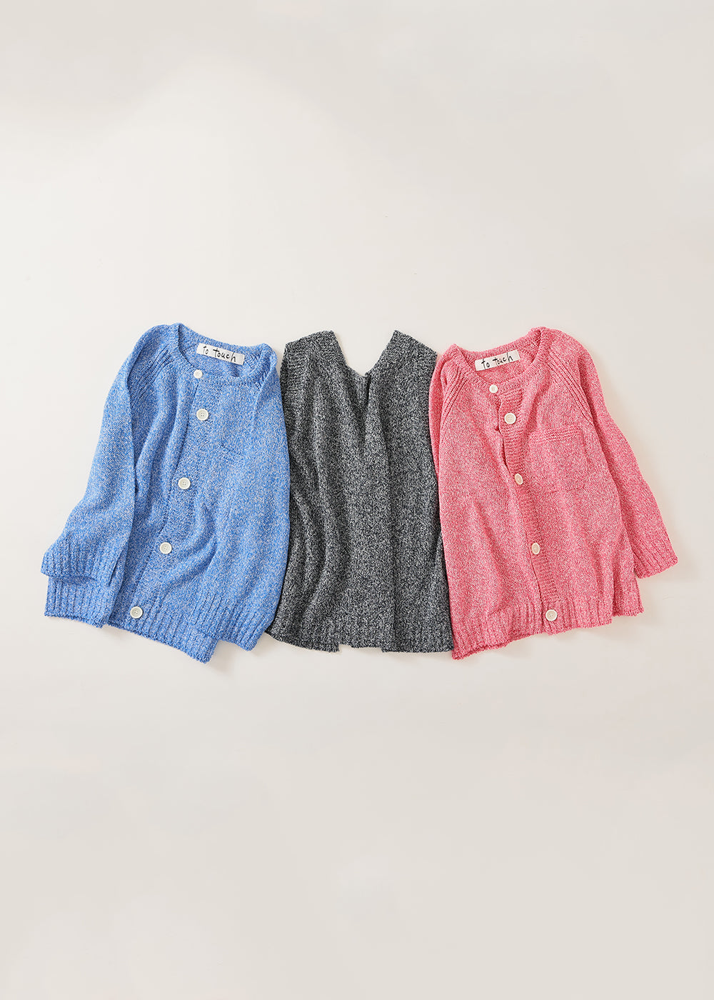 白い糸がミックスした独特の色合いのニットで、ビビットなカラーが目を引きます。