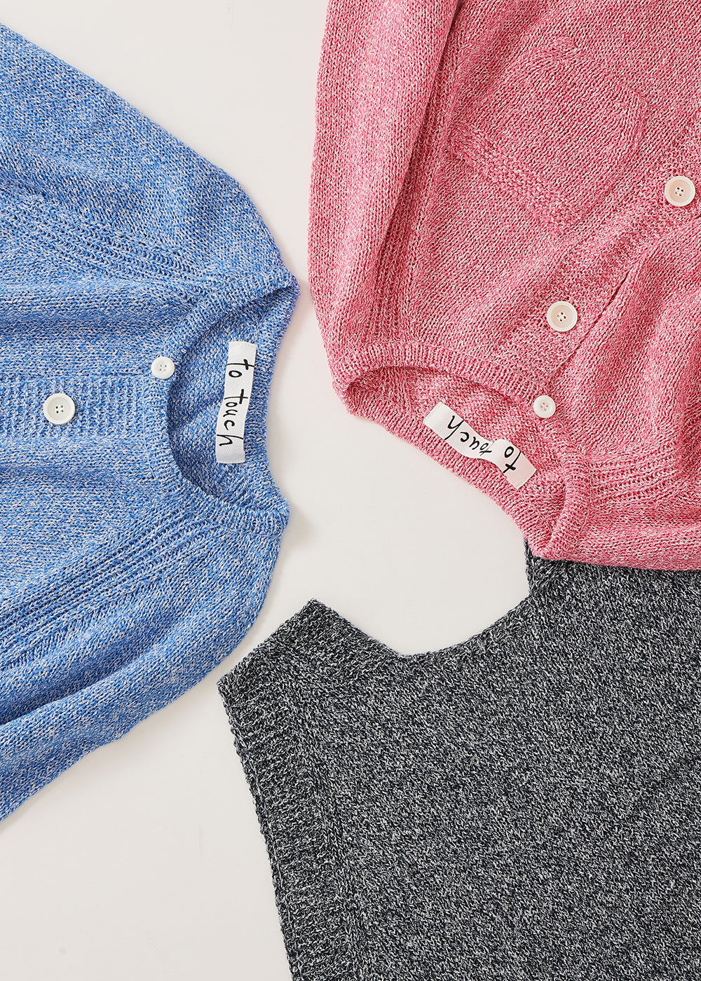 ざっくりとした編み地が涼し気で、存在感のある一枚です。